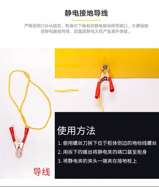 9:严格按照OSHA规范,柜身设有静电接地传导端口,方便连接静电接地导线。