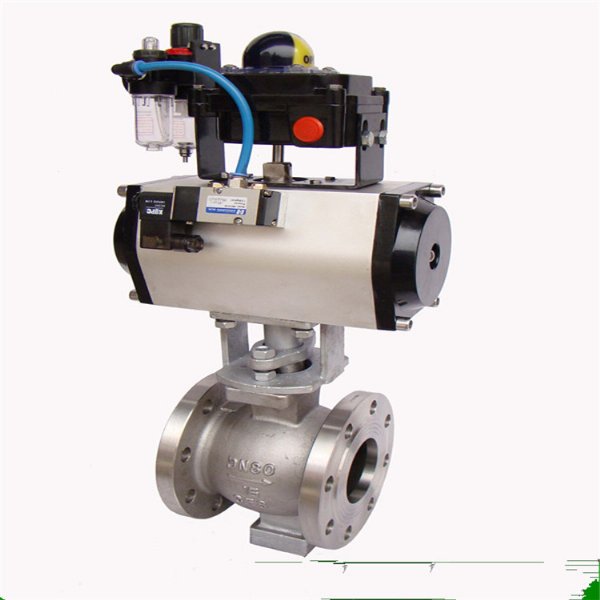 气动V型调节球阀采用圆柱型弹簧预载的带补偿性可动金属阀座结构,密封性能可靠。球芯与阀座不会产生卡阻或脱离。