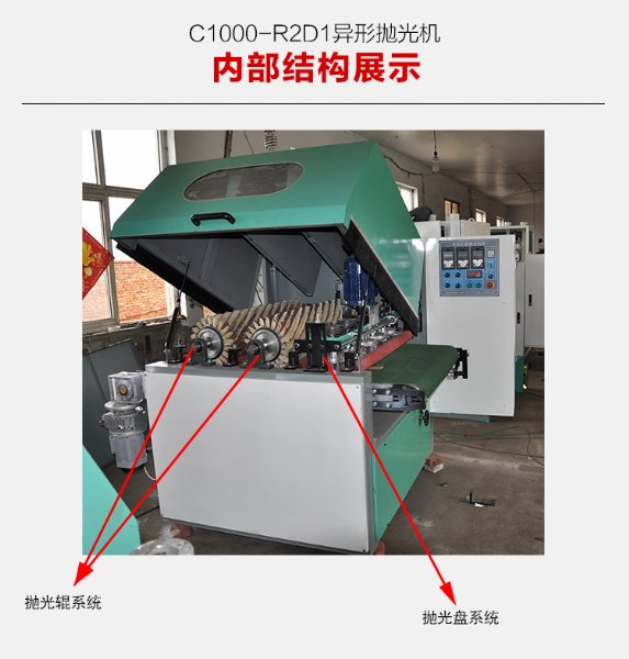 C1000-R2D1 型抛光机采用“3辊配置“设计生产,以达到理想抛光效果。一道纵向辊从水平方向打磨,实现全方位多角度抛光,无死角。第二道圆盘旋转打磨凹凸不平的材料,全方位的打磨
