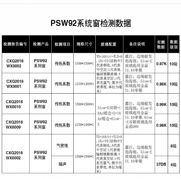 系统测试结果依据国家标准《铝合金门窗》GB/T8478-2008