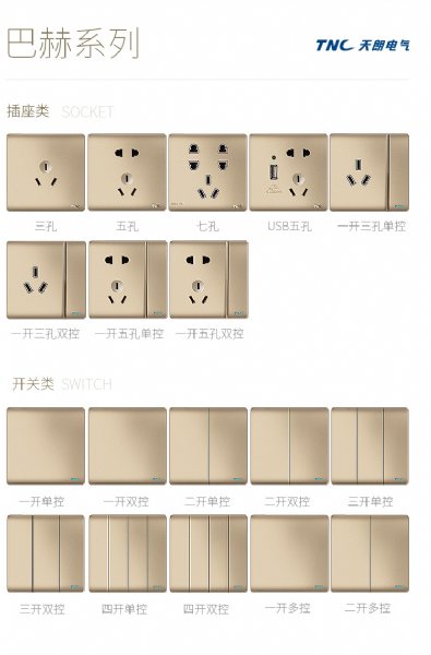 开关插座选项: 五孔插座 三孔16A 七孔 一开三孔16A 一开五孔 五孔带双USB 一开单控 一开双控 二开单控 二开双控 三开单控 三开双控 四开单控 四开双控 电脑 电视 电话 电话电脑 电视电脑 空白面板 其他功能件 - 中山市天朗电器有限公司
