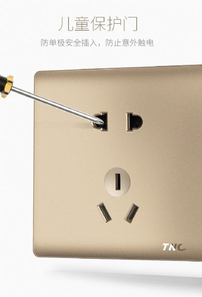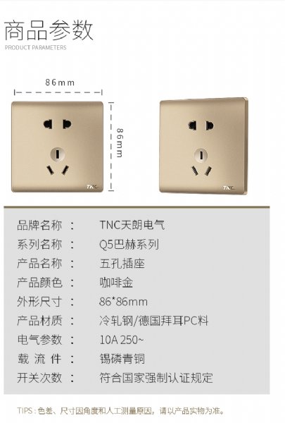 TNC天朗电器Q5香槟金二三插墙壁五孔插座