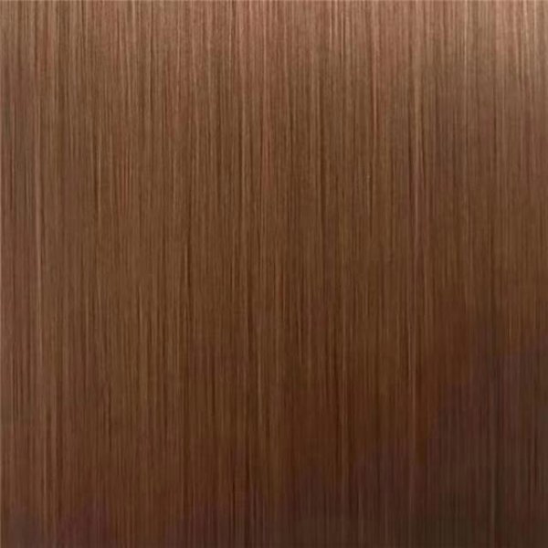 不锈钢纳米镀铜是这两年新研发的着色技术,通过做底+拉丝+上色油+无指纹+烘烤。等技术将仿古铜的古香古色固定在不锈钢表面,纳米镀铜较水镀铜要更加便宜,颜色更稳定,也解决了水镀铜色差难以控制的问题。古铜色具有很强的视觉冲击力,又具有厚重、自然、渊博、和谐,给人一种很稳重安心的感觉,和一种岁月的厚重感。纳米镀铜不锈钢板有着优雅的线条,独特的色系,呈现出唯美的姿态,既融入古典元素也不乏让人耳目一新的视觉效果。纳米镀铜不锈钢板用在装饰领域常用来点缀古朴雅致,高雅端庄氛围,一般用于酒店装饰,KTV装饰和其他高档装饰工程。