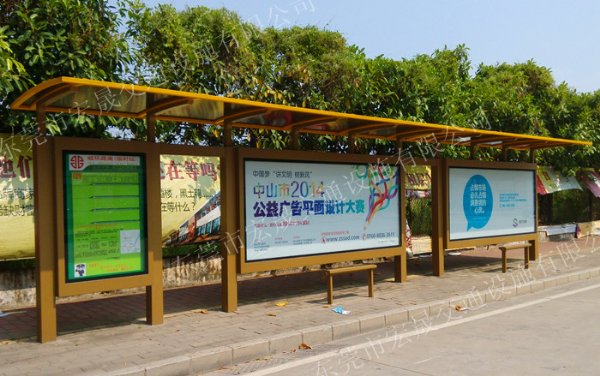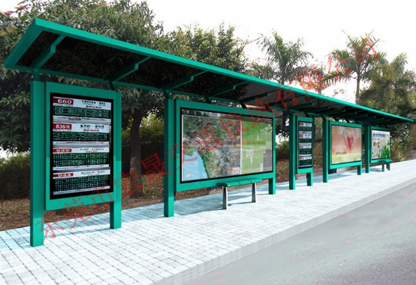 2、顶棚:一般有玻璃顶棚、不锈钢顶棚、彩钢顶棚、pc耐力板顶棚、阳光板顶棚、张拉膜、艺术顶棚。顶棚的作用是用来为候车的人遮阳挡雨的,这和公交站牌是不一样的。