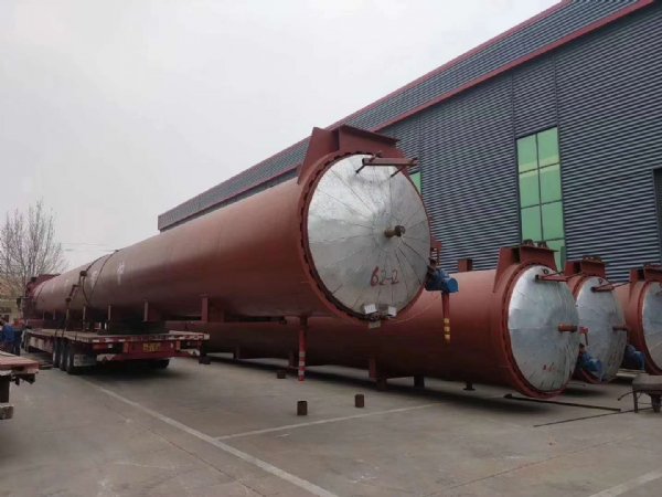 蒸压釜釜体现场放置时应用两只支座支起,支座与釜体应接触均匀,两支座之间的距离约为釜长的3/5,而且应对称布置。对于暂不安装的,至少应均匀设置四个支座,支座端面以不大于2.5m为宜,支座与釜体应接触均匀,这样做的目的是为了防止釜体变形。此外,还应采取防止腐蚀措施。 - 山东御华清洁能源科技有限公司