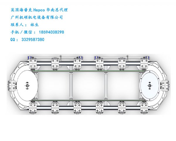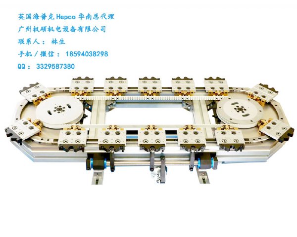 Hepco海普克—DTS精密环形导轨系统适用于连续性运动和间歇性运动,可经过预编程将滑座停止在系统中的任何位置或多个位置。滑座等间距*,并以高强度同步带连接,伺服电机通过同步带,实现多个滑座的同步传动,承载滑座锁定系统适用于间歇式运动应用,锁定系统安装在系统中任何需要重复*的直线部分,可精*承载滑座,并将滑座锁定为静止状态,客户可在滑座精*后进行其他操作。