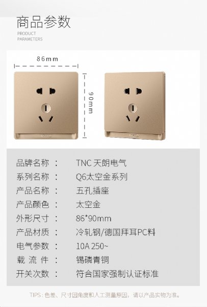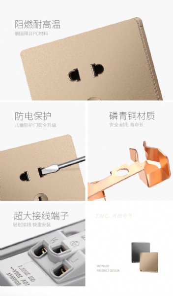 香槟金Q6二三插墙壁五孔插座TNC天朗电器招商加盟
