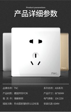 象牙白A06二三插墙壁五孔插座TNC天朗电器招商加盟