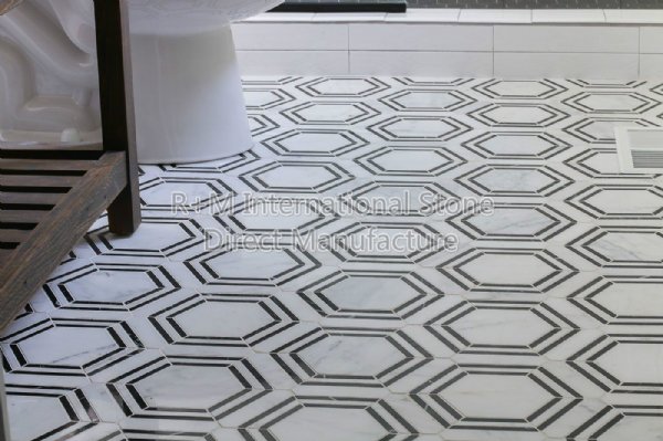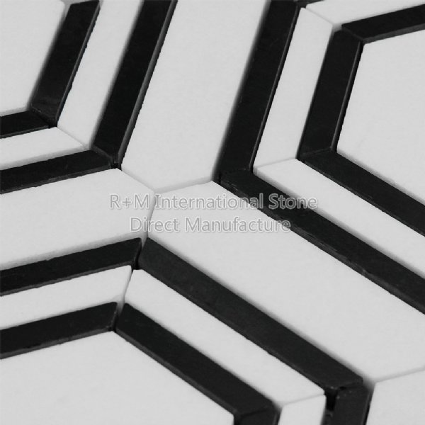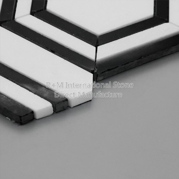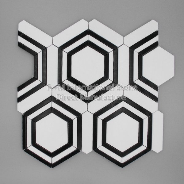 水晶白+墨玉 大六角马赛克
