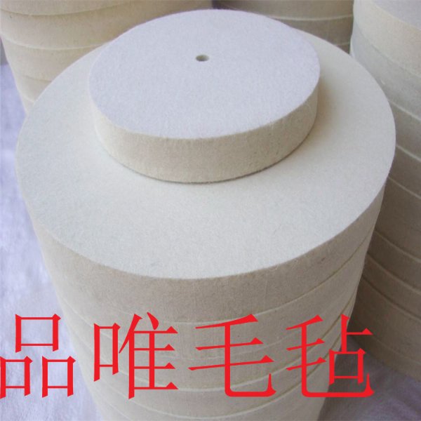 如何选择毛毡轮:按被抛物品需要的正确的密度大小选用适中的毛毡轮,按被抛物品选择毛毡轮的质量,*后抛光选择毛质细没有杂质的产品,市场上出现部分用平面毛毡冲压的毛毡轮,因平面毛毡密度达不到抛光密度,毛质长度、粗细到不到要求,易损伤被抛物品面的质量 - 南宫市品唯毛毡有限公司