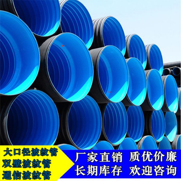 大口径双壁波纹管,大口径排水管,大口径排污管是一种新型轻质管材。是以高密度hdpe为主要原料,分别由内、外挤出机共同挤出,一次成型,内壁平滑,外壁是梯形波纹状,内外壁之间有夹壁空心层的塑料管材。产品具有环刚度高、耐高压、韧性好、耐腐蚀、重量轻、隔音减震,较高的*紫外线稳定性,使用寿命长,弯曲性好,*冲击强度高等特点。可敷设在地质较差的路段,而且密封性好,施工快捷。广泛应用于市政改造工程、建筑、工农业穿线排水、农业节水灌溉、污水处理工程等领域。是水泥管、铸铁管、球墨管、钢管等其他材质管材的替代产品。