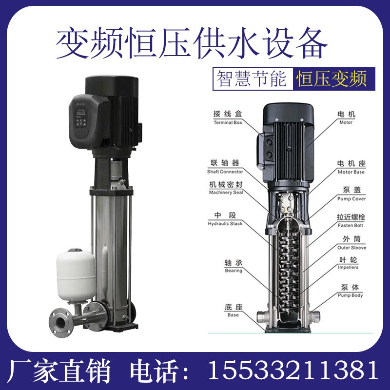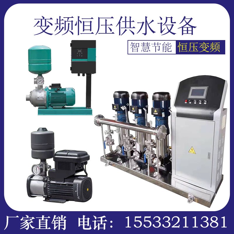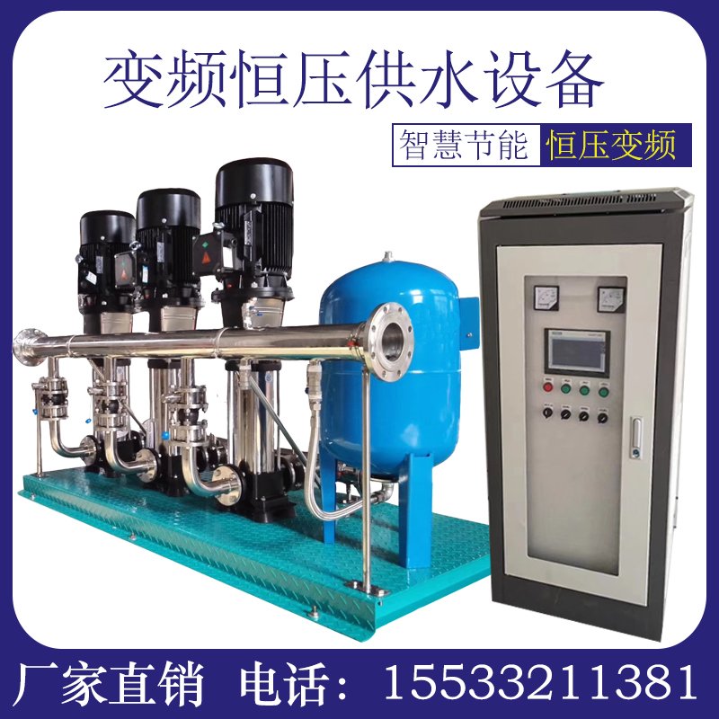恒压变频供水设备是一种直接与水箱连接,来进行成套供水的设备。设备由变频控制柜,自动化控制系统、水泵机组、稳压罐、止回阀、压力传感器、阀门、压力表和管路系统等组成。