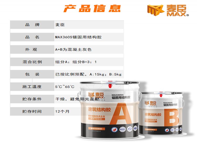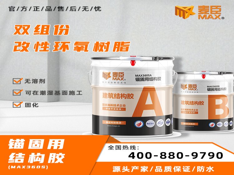 麦臣®锚固用结构胶(桶装)是无溶剂、双组份改性环氧树脂胶,通过环氧胶粘剂与混凝土构件粘接,使钢筋或锚栓与构件共同受力提升构件承载能力。