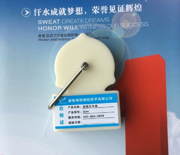 线路曲线正线检测高低通常需要三人一组进行,使用此型曲线正矢测量盒仅需一人就可以完成这一工作。曲线正矢测量盒制作精细,小巧,轻便,美观,盒体为黄色耐磨型ABS原料制成,且操作方便。曲线正矢测量盒的前端置放两块长方块磁铁。(该磁铁由丝线相连可吸附于钢轨侧面做为定点测量点,并将丝线拉紧,测试都可方便的没得曲线的正矢值。盒内后端设置手动绳轮,可将20米以上的线揺入盒内或从盒内放出,为满足需求,设计有30米、40米、50米的规格产品。