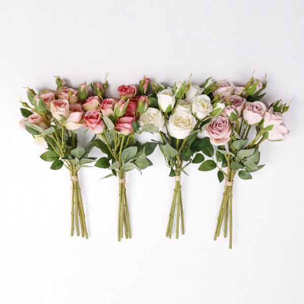 - 迷你5头小玫瑰 厂家直销仿真玫瑰花 家居客厅餐桌摆件假花