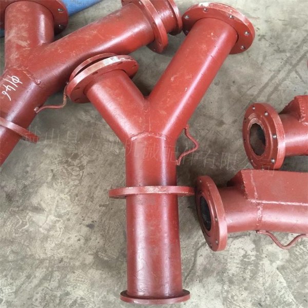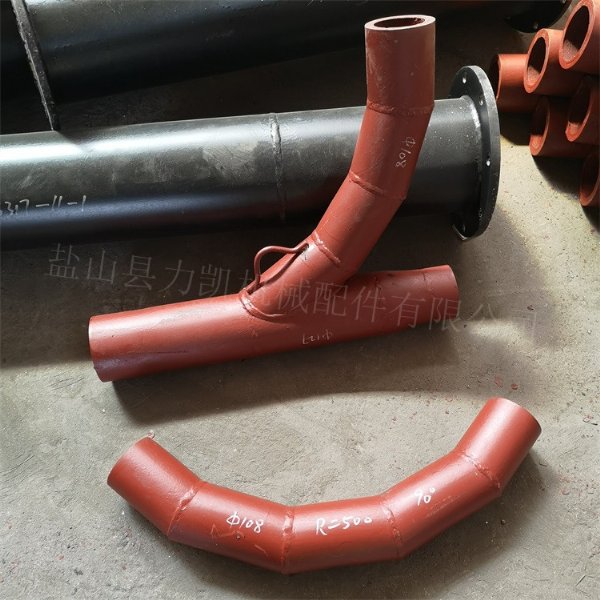 陶瓷内衬弯头内衬陶瓷弯头离心浇铸复合管是采用“自蔓燃高温合成-高速离心技术”制造的复合管材,在高温高速下形成均匀、致密且表面光滑的陶瓷层及过渡层。另外工作常温850~900度陶瓷都不会掉落,重量较轻,复合陶瓷以硬度防磨,解决过去以厚度防磨。目前直管、弯头、弯管、三通等在磨损严重行业使用效果非常好。全称陶瓷内衬复合钢管。复合管因充分发挥了钢管强度高、韧性好、耐冲击、焊接性能好以及刚玉瓷高硬度、高耐磨、耐蚀、耐热性好,克服了钢管硬度低、耐磨性差以及陶瓷韧性差的特点。因此,复合管具有良好的耐磨、耐热、耐蚀及抗机械冲击与热冲击、可焊性好等综合性能。是输送颗粒物料、磨削、腐蚀性介质等理想的耐磨、耐蚀管道。