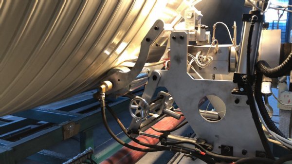 利用我公司开发的挤出缠绕无焊缝工艺可确保储罐的机械强度和安全可靠性能,可进行圈带厚度达到60mm以上,其剖面可以渐变,并使原料集中使用在受力大的部位。缠绕罐体的罐身采用无焊缝设计,罐底以及罐顶采用专业设备自动化焊接以及相应的正确工序,可避免泄露的危险,保障工作和环境的安全。