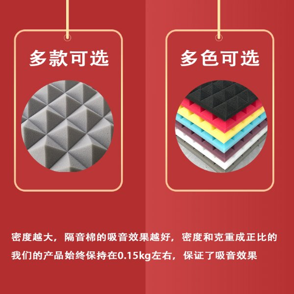 3、密度:密度越高,吸收低频的能力越强。金字塔吸音海绵的高密度结构,使其有了一个非常宽阔的吸收频带。