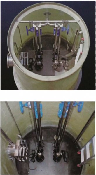 结构形式 : 模块化湿井泵站 ( 标准 ),模块化集成式泵站,带维修间的湿井泵站以及完全客户化订制的泵站内部管路的材质:不锈钢 304( 标准 ),玻璃钢