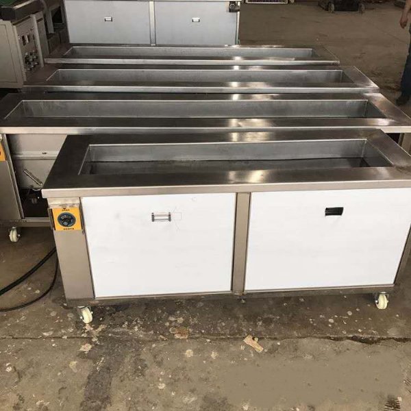 超声波清洗机主要由超声波清洗槽和超声波发生器两部分构成。超声波清洗槽用坚固弹性好、耐腐蚀的优质不锈钢制成,底部安装有超声波换能器振子;超声波发生器产生高频高压,通过电缆联结线传导给换能器,换能器与振动板一起产生高频共振,从而使清洗槽中的溶剂受超声波作用对污垢进行洗净。清洗优点如下: