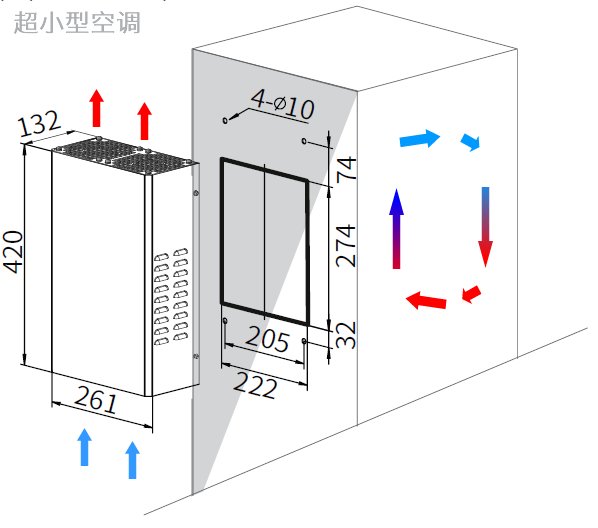 □ 外挂式安装,外观精巧,安装灵活;凸出型内部循环风向可根据用户要求选择出风方式;