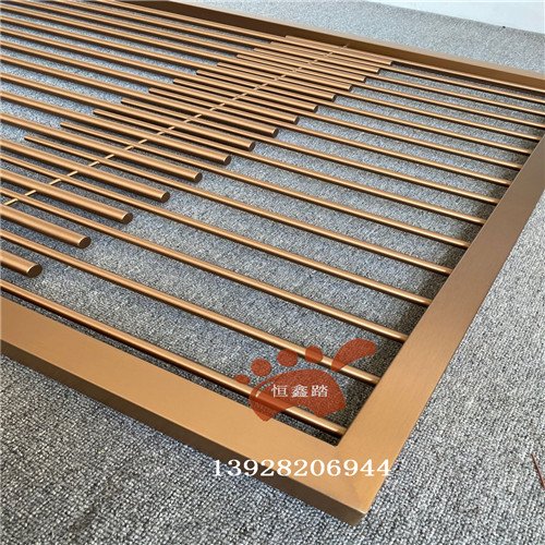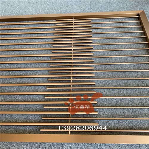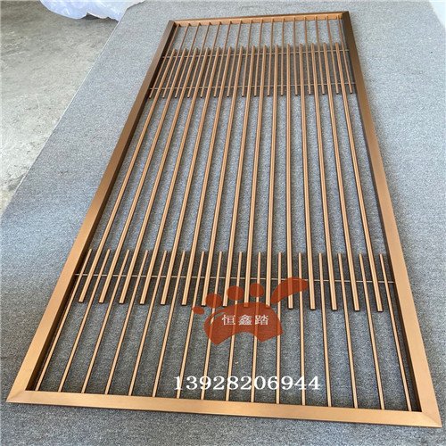 不锈钢拉丝玫瑰金屏风加工分为:玫瑰金不锈钢激光镂空屏风和玫瑰金不锈钢焊接抛光加工屏风。玫瑰金不锈钢隔断分玫瑰金不锈钢板激光镂空切割屏风和玫瑰金不锈钢管焊接屏风.玫瑰金不锈钢板镂空屏风工艺是在不锈钢板上直接激光切割镂空花纹或花格,表面平整,无毛刺.玫瑰金不锈钢管焊接屏风有两种工艺,一种是见缝工艺,一种是无缝工艺.见缝工艺是在屏风的正面能看到切割45度角,拼在一起的,无缝工艺就是从整个外观看,看不到焊点.所有焊接口平整,拼缝口保证没有缝隙。外框刨坑折弯,花格全部焊在则面。一面不锈钢花格门焊死固定到外框架。另一面不锈钢花格门用螺丝固定做到可以折装.不锈钢屏风的厚度管材一般是0.9,框架的厚度一般是1.2-1.5mm;玫瑰金不锈钢屏风表面处理:板材表面处理也分为镜面和拉沙两种,家装一般不建议用镜面不锈钢,拉丝的效果好一些。玫瑰金不锈钢屏风保养:不锈钢容易沾上指纹,可以做无指纹加工或用半干的抹布擦酒精擦试。 - 佛山市恒鑫踏金属制品有限公司