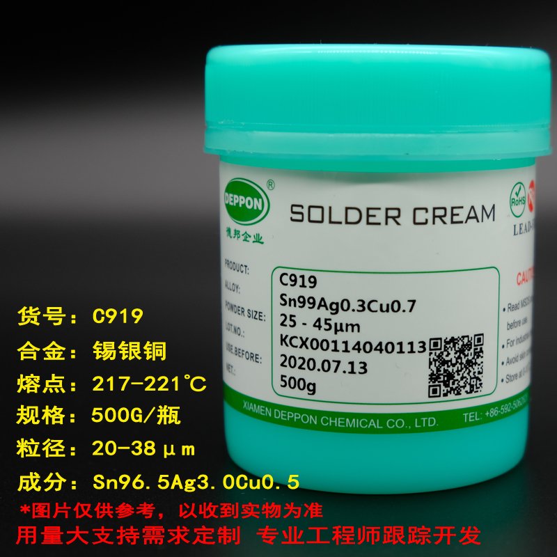 C919焊锡膏是一款适应超细工艺印刷和回流的无铅免清洗焊锡膏。拥有宽工艺窗口,为细间距元器件提供表面贴装工艺解决方案。在8 小时的使用中均可提供卓越的印刷性能。出色的回流工艺窗口,使得其即使使用高浸润曲线,对Cu-OSP板仍可得到良好的焊接效果。对各种尺寸的印刷点均有良好的结合。优秀的抗坍塌性能很好的抑制不规则锡珠的产生。焊点外观优秀,易于目检。空洞性能达到IPC CLASSⅢ级水平及IPC焊剂分类为ROL0级,确保产品环保和可靠性。