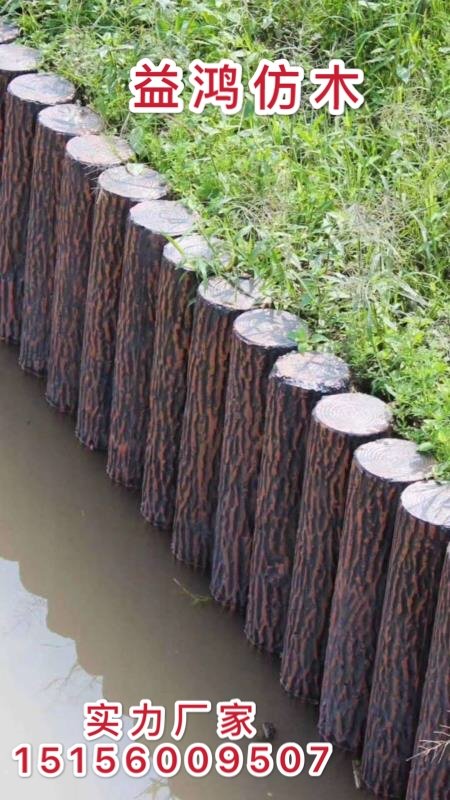 仿木桩是由钢筋混凝土制成,具有强度高 易塑性强 外形逼真耐腐蚀等特点,主要用于河道治理生态护岸,园林景观绿化等工程,长度和配筋可以根据上位机,施工要求随意调整。规格多样,有直径10公分长50公分的连排桩 直径15公分长1.2/1.5/2/2.5/3/4/5米的 直径20公分长1.5/2/2.5/3/4/5米的 直径30公分长1.5/2/2.5/3/4/5的,配筋也有不同 具体根据图纸生产