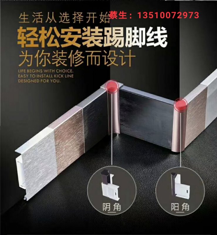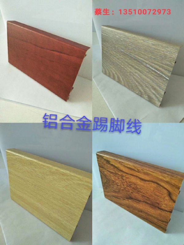 铝合金踢脚线它广泛适用办公楼、写字间、住宅、宾馆、酒店、洗浴中心、医院、学校等各类公共场所及民用建筑,是每个建筑中必不可少的建筑装饰产品。 铝合金踢脚线颜色:主要是亮光拉丝、香槟拉丝、玫瑰金拉丝讴歌红拉丝黄檀黄花梨红酸枝柚木和各种喷涂