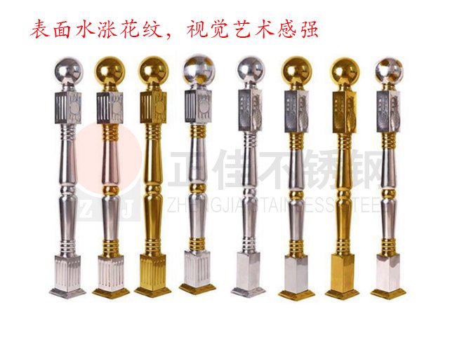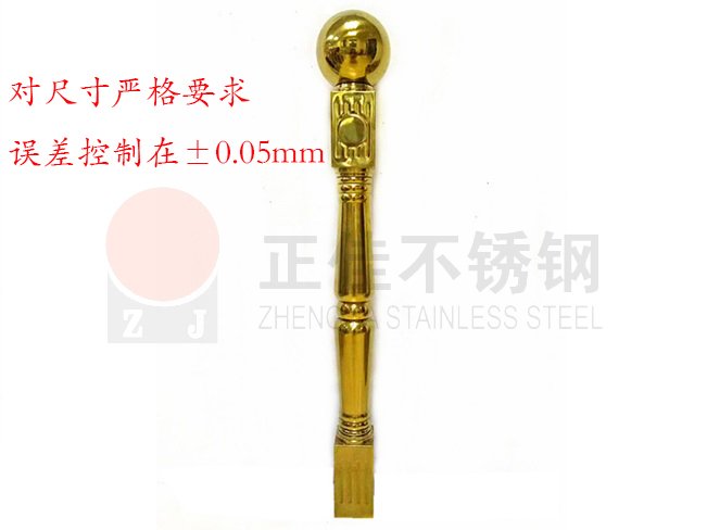 正佳φ40水涨将军柱不锈钢装饰用管的管体表面经过水涨工艺的加工,使其形成将军柱形状,而且管体完好无缺,光亮整洁,没有开裂,将军柱形状的花纹清晰有触感。φ40水涨将军柱不锈钢装饰用管还采用了真空电镀着色工艺,不仅有本色,还有钛金色,视觉艺术感强,适用于建筑装饰当中,特别是楼梯扶手这一方面。 - 佛山市南海正佳不锈钢制品有限公司