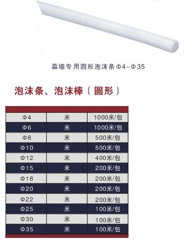 圆形泡沫棒规格齐全4mm,5mm,6mm,8mm,10mm,12mm,15mm,18mm,20mm,22mm,25mm,30mm,35mm,40mm,45mm,50mm,现货充足。