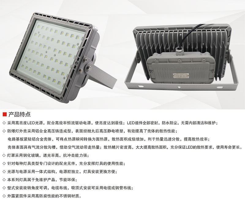 - 金exking隔爆型LED防爆泛光灯220V 50W白光5000K吸顶式生产厂家