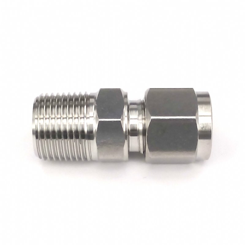 卡套接头由三部分组成:接头体,卡套,螺母。当卡套和螺母在钢管上插入接头体后,旋紧螺母,卡套前端外侧与接头体锥面贴合,内刃均匀咬入无缝钢管,形成有效密封。