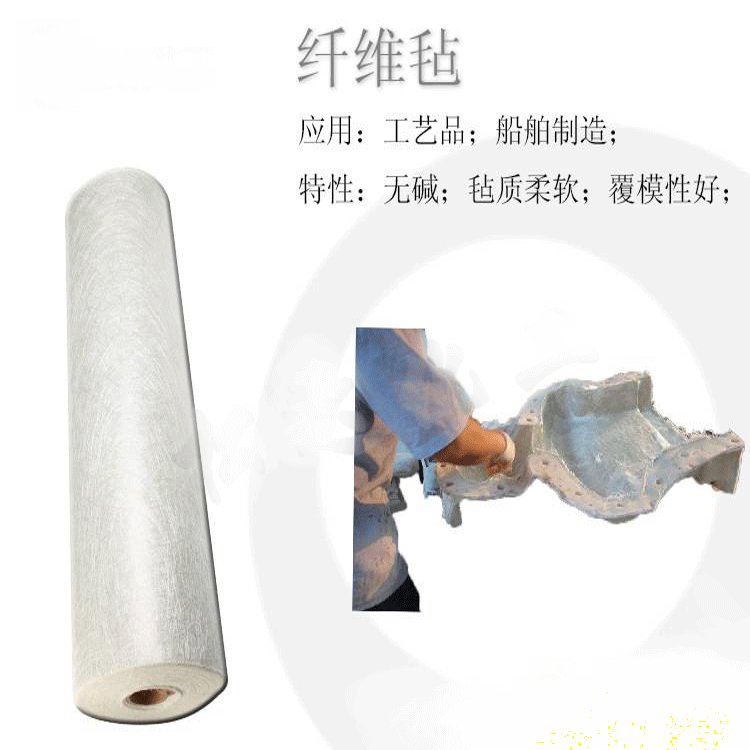 玻璃纤维毡是由连续原丝或短切原丝不定向地通过化学粘结剂或机械作用结合在一起制成的薄片状制品,分两化粉末或乳液粘结剂无定向粘结而成,适用于各种树脂增强系统,如不饱和聚酯树脂,乙烯基树脂和环氧树脂等。广泛用于手糊、缠绕、模压等成型产品,如造船、汽车、冷却塔、卫浴洁具、防腐管道及其他玻璃钢制品。
