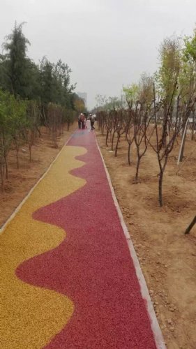 胶粘石不仅指透水胶粘彩石、透水石,而且也指彩色透水混凝土、彩色透水地坪。胶粘石路面使用的原材料无..