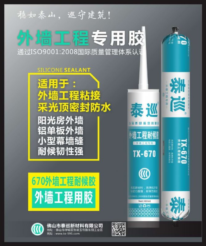 温馨提示:由于施工条件和方法非我们所能控制,用户需现场测试基材与硅酮胶的适用性,达到满意效果后方可施工。本公司不承担施工偶发或者连带性损失及其它非质量问题造成损失的任何责任。