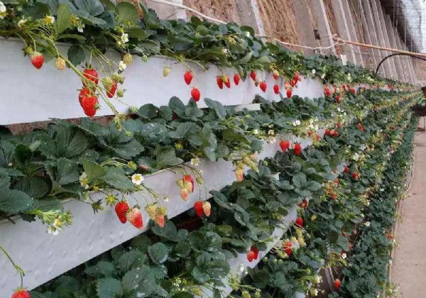 草莓无土栽培槽模式每667平方米内的栽培总量可达1200--16000株,节约用地至少在2/3以上,营养基质可按要求选配,不收土壤条件的限制,避免了土壤病虫害和草莓重茬带来的危害。
