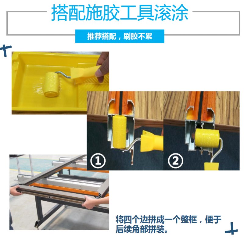 ②主要用于铝合金门、窗、幕墙等型材角部45°组角拼接处的结构粘接,起到密封防水的作用。