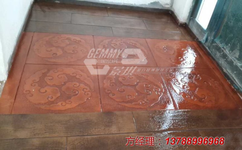 三.现场彩色压模地坪纹理与基层浑然一体,解决了常规铺装难以克服的表层松动和中空造成的易破裂现象;