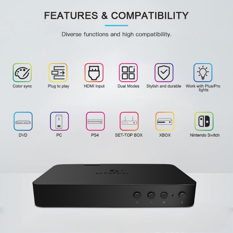 GLEDOPTO HDMI同步盒处理HDMI信号,使连接的LED条同步改变颜色或亮度