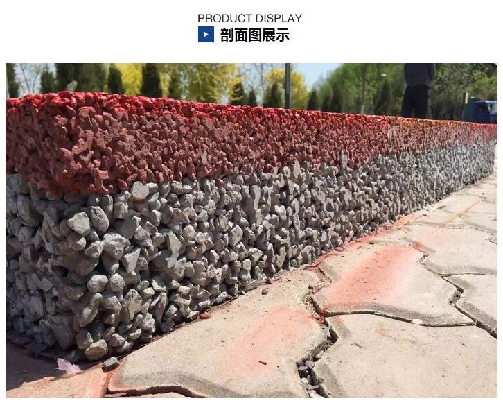 4.透水环保 — 彩石粘接后呈自然堆积态度,孔穴均匀分布,是所有透水制品中透水率较好的一种。