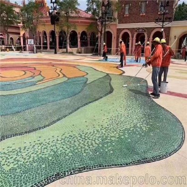 砾石聚合物地坪常常应用于:如游乐场、公园等,往往通过铺设花岗岩、大理石等石材达到预设效果,但一般来讲,石材尺寸较为规格,在铺设过程中,对于弧度较大的转弯处,一般需要将石材切割成小块进行拼接,不仅工序繁琐,污染环境,而且切割过程中也容易造成石材的严重浪费,并且效果往往不够理想;此外,石材铺设路面,块材之间独立存在,整版承载力差,边角易破损。