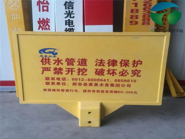 玻璃钢警示牌作为一种新型的产品,采用新型不饱和树脂材 料,特种丝印及凹型处理,一次着色固化成型。具有雨水冲泡不损坏,颜色艳丽 不变色。使用寿命长等特点。玻璃钢标牌是采用优质复合材料经过高温一次性压挤而成的,优势众多且防盗,完全弥补了其它材质的不足之处。