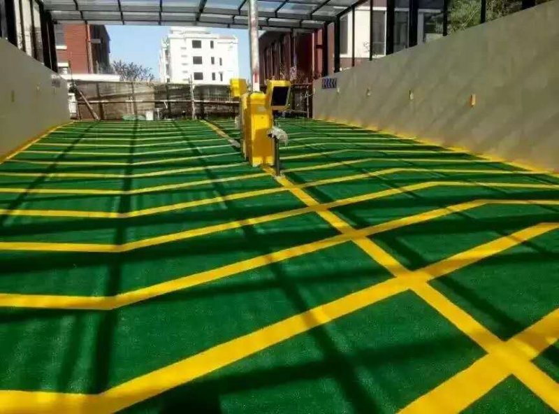 待抗压层干燥后,以喷涂方式施工面层,利用巨大比表面达到防滑效果。本层结构耐磨,表面粗糙、均匀,不会造成车辆进出时的震动。(厚度约3㎜)。
