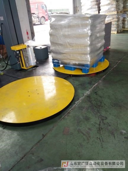利用耐磨胶辊的差速比,将PE缠绕膜充分拉开后,均匀的缠包到转动的托盘货物上。包装过程及包装量等相应参数可自由设定,由各部分传感器采集并返回数据后,汇总到中央处理器(即PLC),由PLC对收到的数据处理后,协调、控制设备做出相应的动作。包装全过程描述:设定好包装层数、加固圈数(除非需要改变包装的牢固度,一般参数设1次即可),把缠绕膜固定到待包托盘上后,按下“运行”按钮,缠绕机按照既定参数运行完毕后,人工切断薄膜,包装完毕。 - 山东宏广捷自动化设备有限公司
