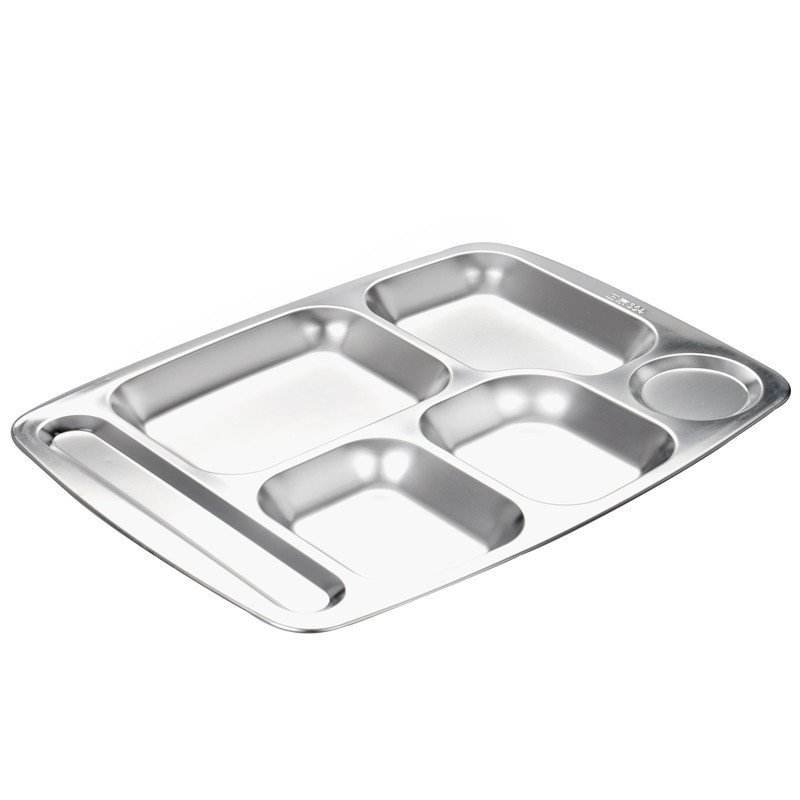 - 304不锈钢五格快餐盒无磁加厚快餐盘钢盖塑料盖保温方形饭盒