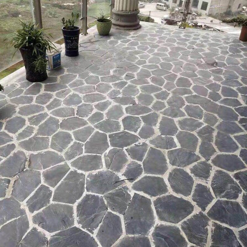 - 青石板冰裂纹 广场地铺黑灰色板岩天然防滑