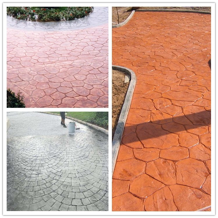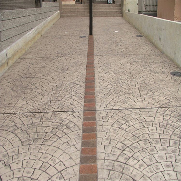 压模地坪,彩色地坪一次性铺装,抗压强度优异,面层*化学材料抗压强度为一般混凝土的3倍,设计人员无需变更混凝土垫层的原设计标号,可以为设计人员提供设计空间。 压模地坪,彩色地坪构成材料及工具包括:脱模粉、彩色强化剂、保护剂、乳液、压模及纸模模具等。
