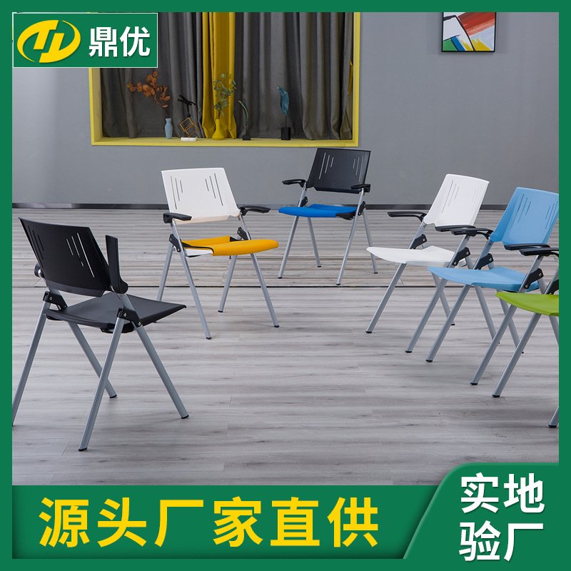 厂家直销塑料培训椅带写字板折叠式会议椅学生桌椅会议室椅新闻椅