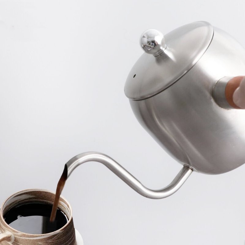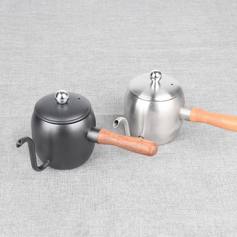 304不锈钢咖啡手冲壶本色特氟龙带盖长嘴奶茶壶 500ml出口